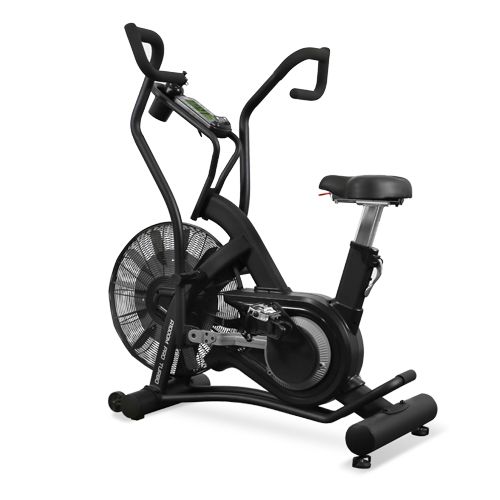 Оборудование относится к классу «вентиляторных» и оснащено аэродинамической системой нагружения. Воздушное сопротивление делает тренировку максимально эффективной для любого уровня спортивной подготовки пользователя. Чем выше скорость, тем выше нагрузка – это основной принцип работы A1000M PRO TURBO. Таким образом, увеличение сопротивления зависит исключительно от интенсивности тренировки пользователя. Главным отличием аэробайка от классического велотренажёра является возможность задействовать руки и включить в работу все тело. Для удобства пользователей на оборудовании предусмотрены поручни с разноплановыми хватами. За комфорт во время интенсивных тренировок отвечает сиденье профессионального класса. Отрегулировать его можно под любого пользователя, как по вертикали, так и по горизонтали. На тренажере установлены педали из легированной стали с туклипсами и ремешками для надежной фиксации ног.