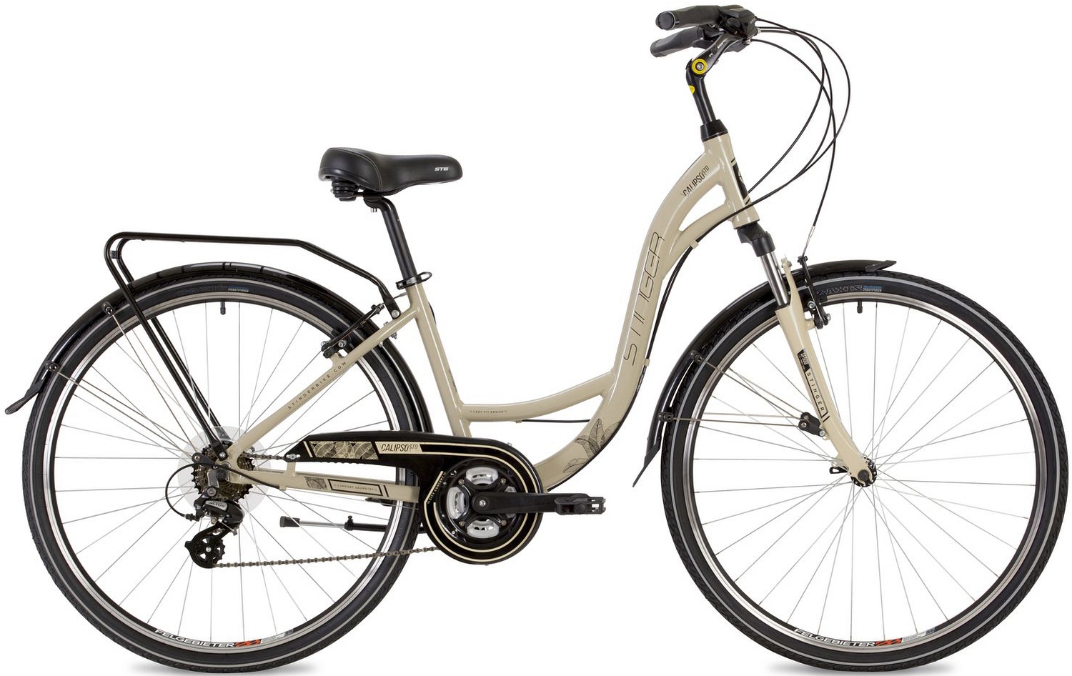 Stinger Calipso STD - красивый и лёгкий алюминиевый дорожный велосипед, с невероятно комфортной посадкой и незабываемым дизайном. Рама сделана из лёгкого алюминия и имеет особую геометрию для лучшей устойчивости при расслабленной езде. Широкое подпружиненное седло и руль с комфортной геометрией регулируются по высоте и наклону - это помогает подобрать для Вас идеальную посадку.