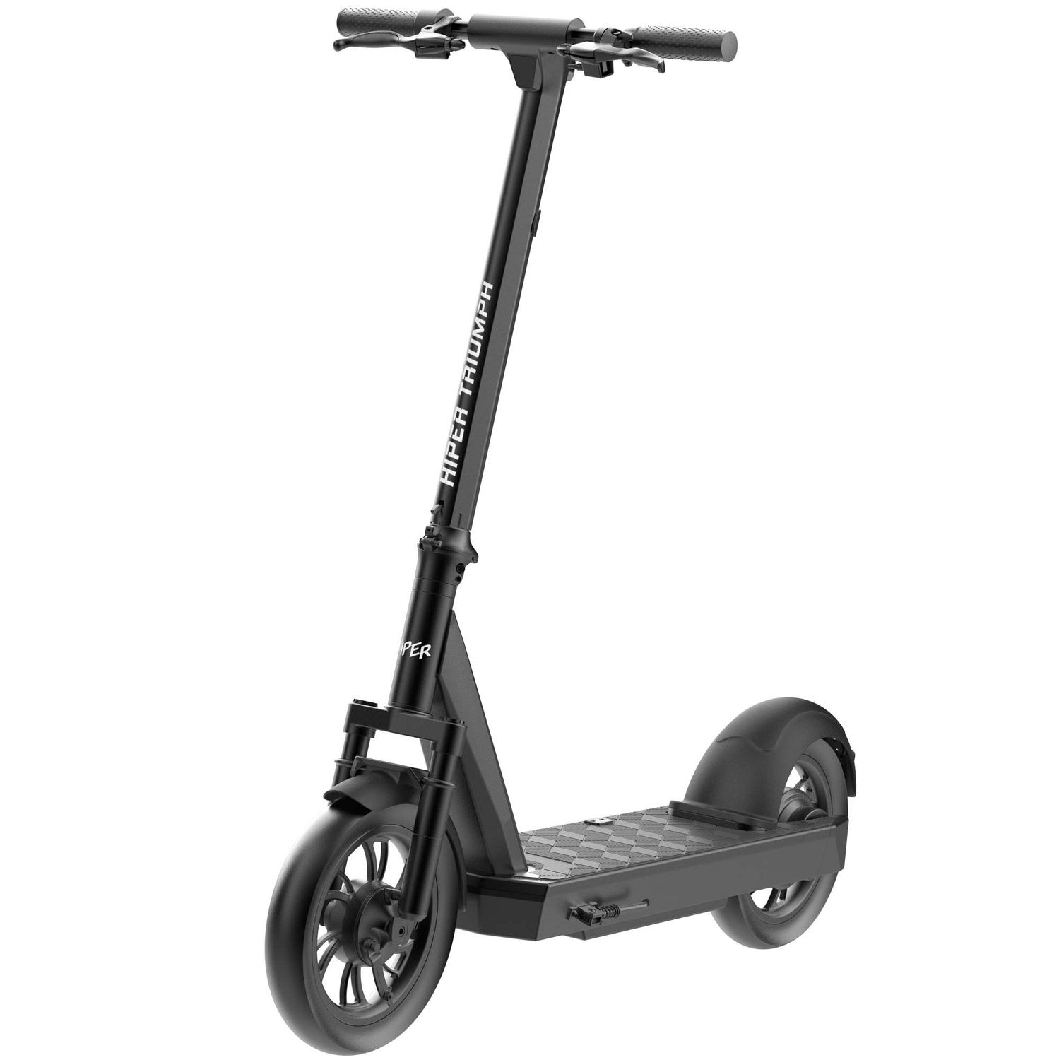 HIPER Triumph M120 - это надёжный электросамокат со складным механизмом и задним приводом. Модель отличается высокой прочностью и способна выдержать большую нагрузку.