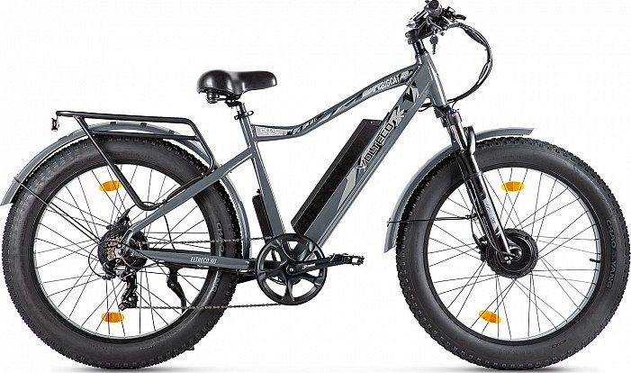 Электрический фэтбайк Volteco BigCat Dual Next (2024) - модель, созданная для любителей активного катания в разных условиях. Он оснащён двумя мощными 500-Ваттными независимыми моторами, которые могут работать синхронно или по отдельности. Это позволяет владельцу байка справляться с сложными участками бездорожья, не сходя с седла, и достигать скорости до 40-45 км/ч.