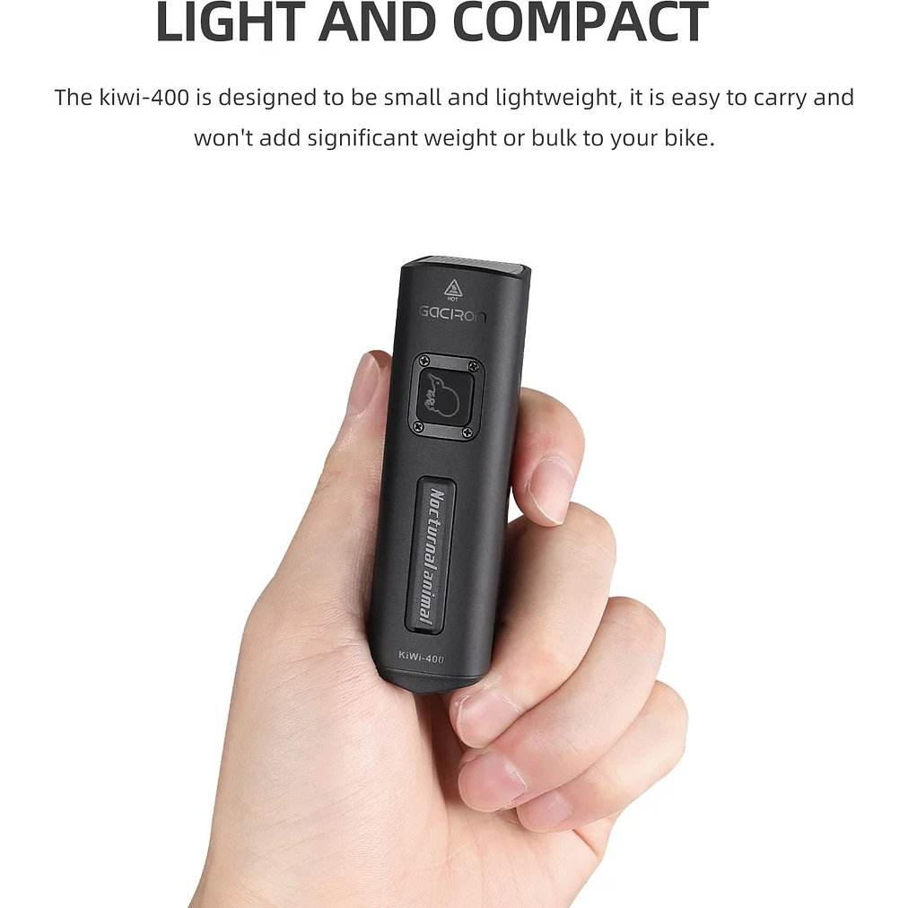 Компактная велофара Gaciron Kiwi-400 – надёжный источник света для городских и загородных поездок. Яркость 400 люмен позволяет чётко видеть дорогу на расстоянии до 200 метров. Современный светодиод CREE обеспечивает мощный световой поток, а отсекающая диаграмма исключает ослепление встречного транспорта.