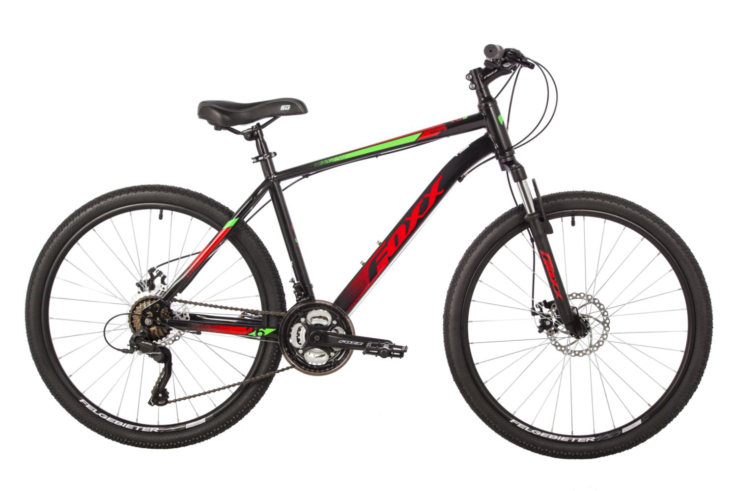 Горный велосипед на 26" колесах. Прочная стальная рама. Пружинно-эластомерная амортизационная вилка с ходом 63 мм. Манетки Sunrun KD80 3x7 скоростей. Задний переключатель Shimano Tourney TZ500. Дисковые механические тормоза Repute D310. Диаметр роторов: 160/160 мм. Трещотка Kangyue KFW-764, 6ск. Цепь TAYA TS-80. Система (шатуны) Металлопластик 170mm 24/34/42T. Каретка Feimin B902. Втулки стальные дисковые. Тип крепления переднего/заднего колеса: эксцентрик / гайки. Обода Felgebeiter VB-18 двойные. Покрышки ZX Sporter 2.0" 22TPI Casing.