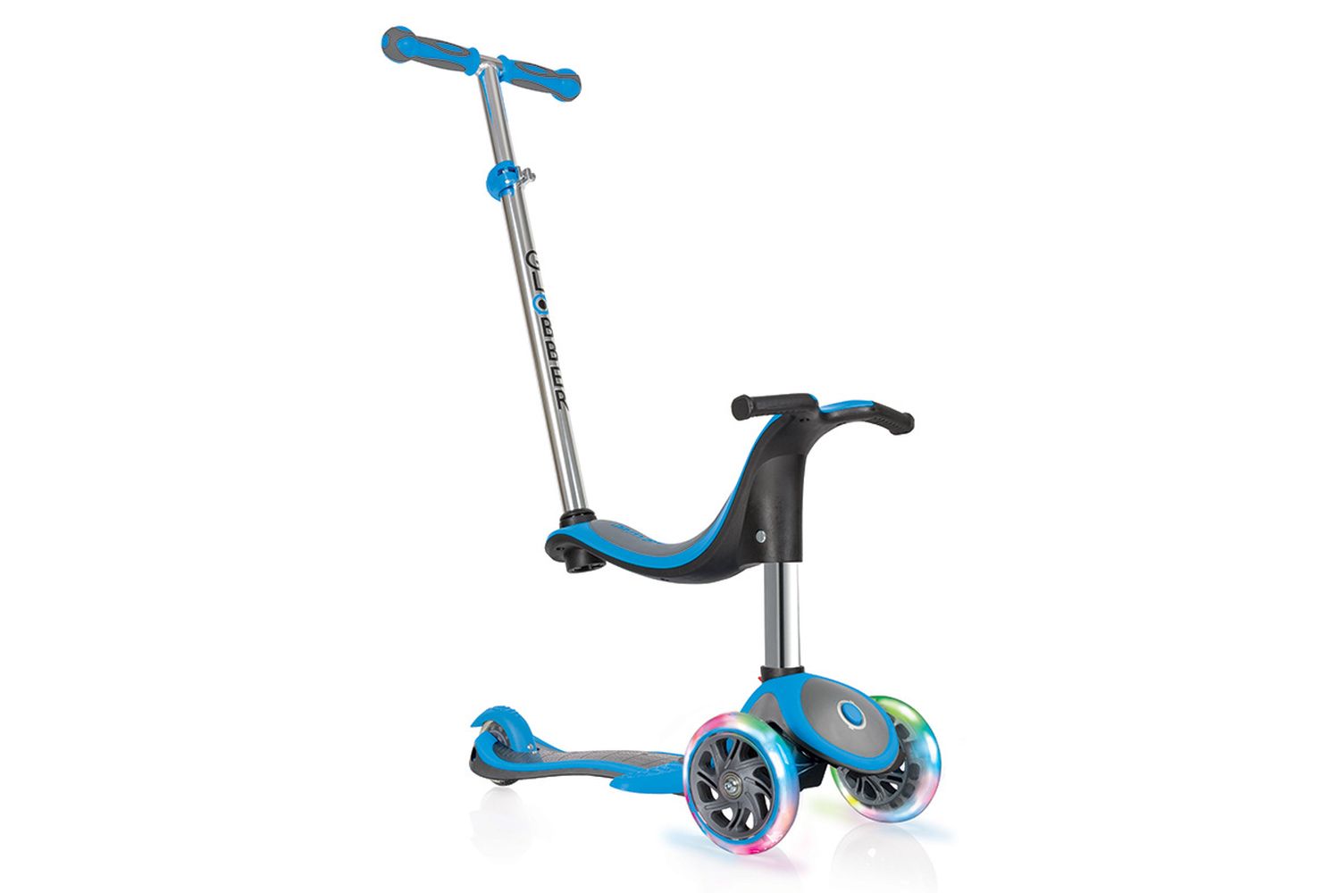 EVO 4 в 1 PLUS разработан для самых молодых гонщиков и состоит из сидения - каталки, беговела и самоката Это лучший выбор, если вы хотите помочь ребенку развить баланс и научить езде на самокате. Этот трансформируемый продукт будет изменяться вместе с вашим ребенком от 12 месяцев до 6 лет, что позволит постоянно пользоваться этой моделью, а не забросить ее через год катания Светящиеся обязательно порадуют вашего ребенка своей яркостью и разнообразием цветов.