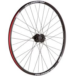 Переднее колесо 27,5 дюймов. Двойной алюминиевый пистонированный обод под 32 спицы. Алюминиевая втулка на эксцентрике Shimano HB-M525A с насыпными подшипниками.