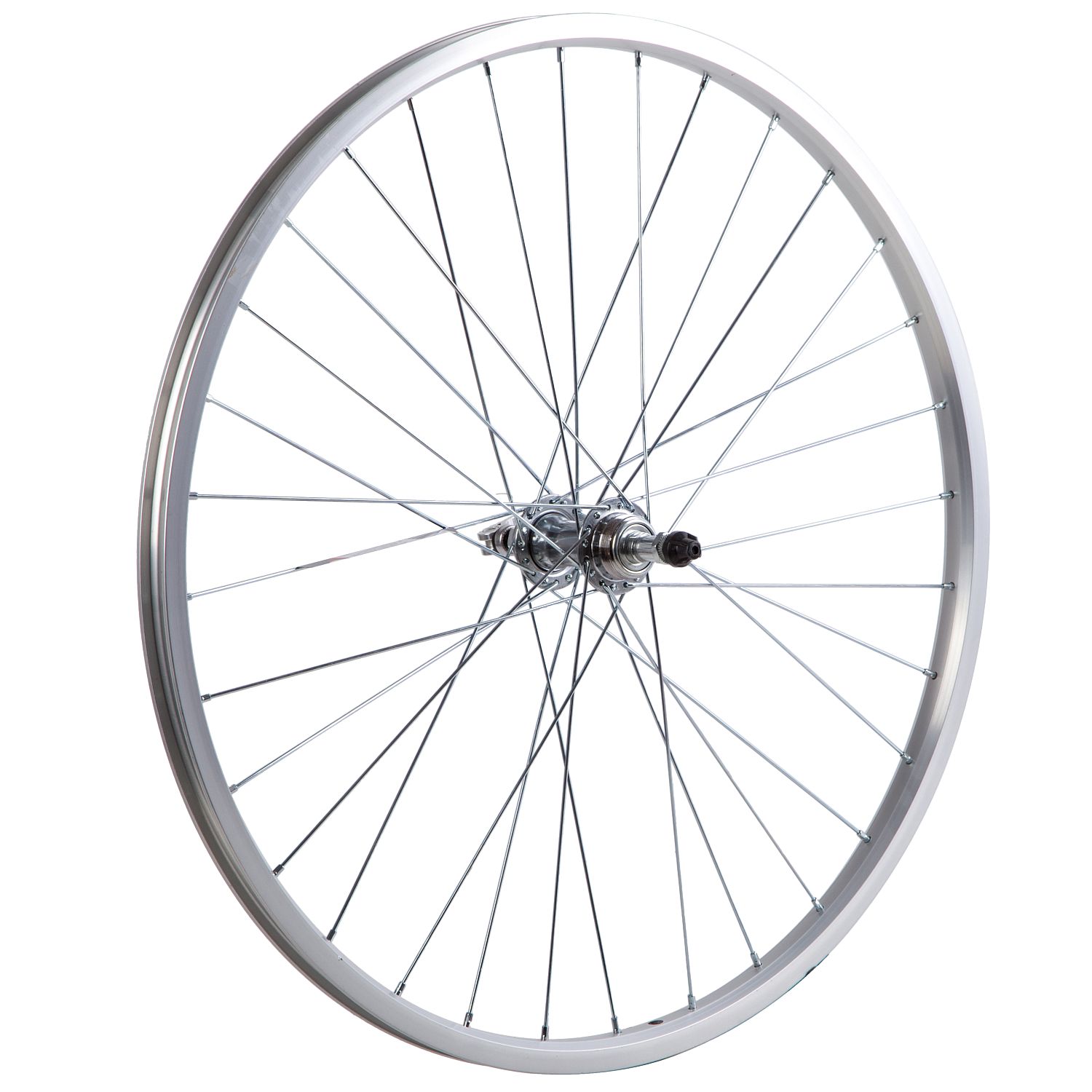 Колесо 26 заднеебез резины. Одностенный алюминиевый обод на 32 спицы. Втулка сталь под трещотку на 6 скоростей.
