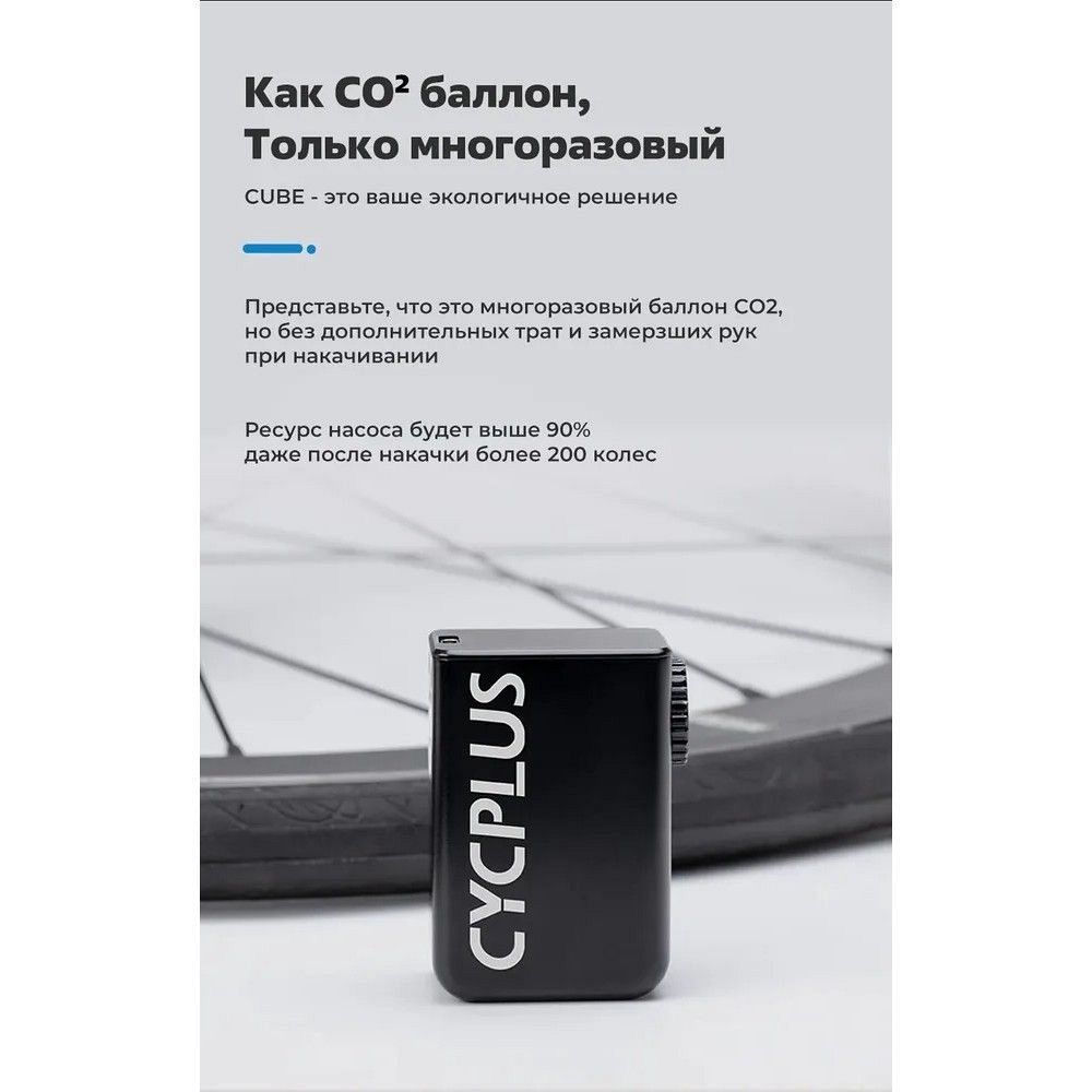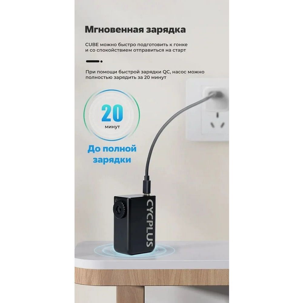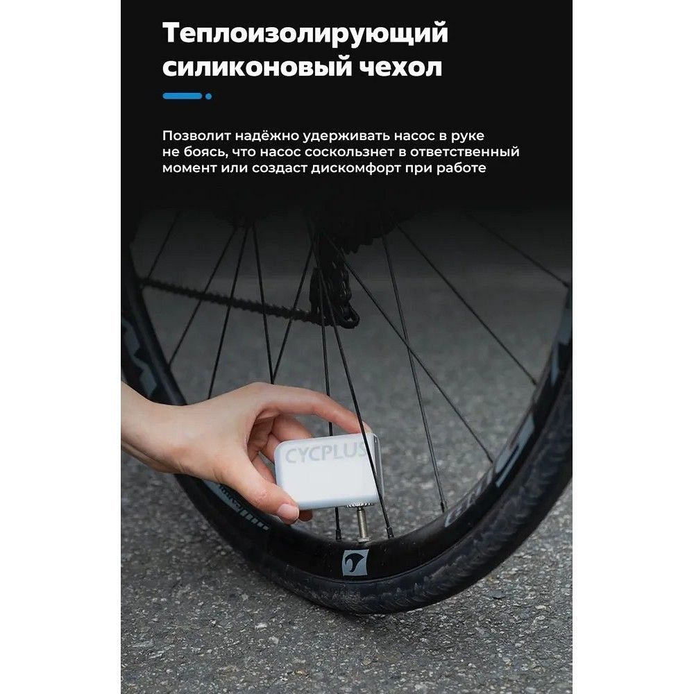 Сверхкомпактное устройство для спортсменов, которое поможет быстро накачать покрышку велосипеда. Является отличной заменой баллончикам с CO2. Сверхкомпактный корпус (помещается в карман джерси). Ультралегкий (97 грамм). Максимальное давление 100 psi. Универсальный (для Schrader и Presta, адаптеры в комплекте). Батарея 300mAh / 7.4V. Зарядка по кабелю USB Type-C (5V / 1.5A). Время полной зарядки 20 минут (с устройством Quick Charge). Беспрерывная накачка в течение 200 секунд. Силиконовый чехол.