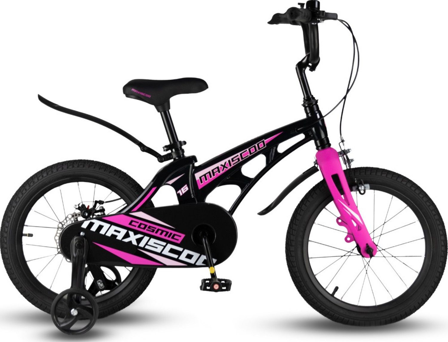 В комплекте с велосипедом идут боковые колеса, крылья и звонок, а также полная защита цепи. Это обеспечивает дополнительную безопасность и комфорт при езде, позволяя ребенку наслаждаться своими приключениями на велосипеде Maxiscoo COSMIC Стандарт 16" (2024).