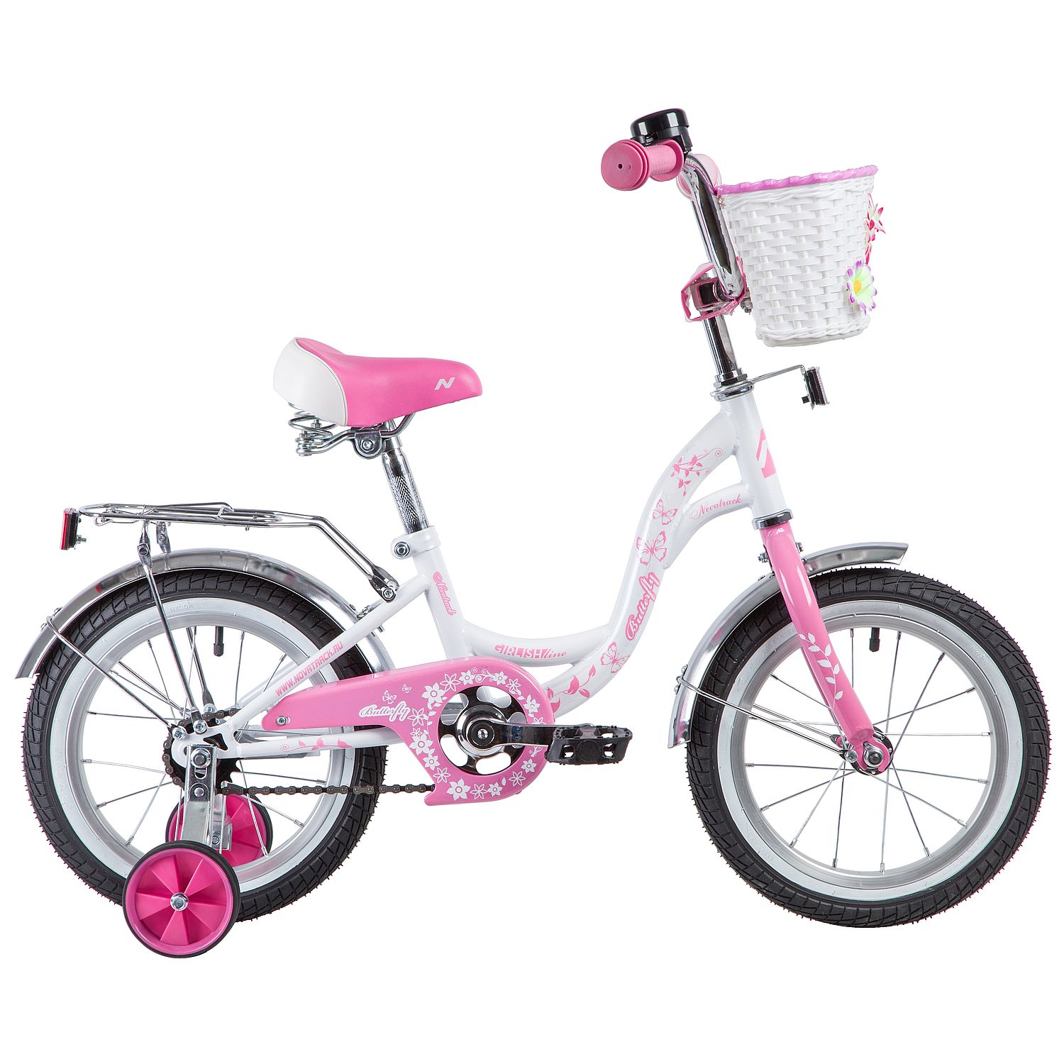 Novatrack BUTTERFLY 14 - модель относится к серии велосипедов для девочек. Стильный и яркий дизайн, не оставит равнодушной ни одну маленькую леди. Задний багажник, красивая корзинка на руле, полнормазмерные металлические крыля - все это уже входит в комплектацию велосипеда. Удобная низкая рама, регулировка седла и руля по высоте сделает обучение катания на велосипеде простым и удобным.