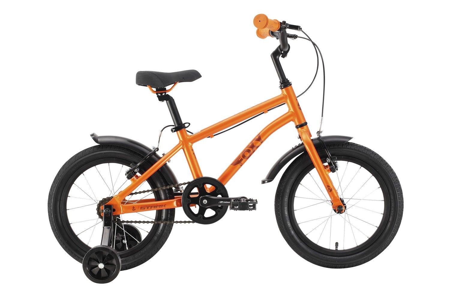 Stark Foxy 16 Boy - детский велосипед для мальчиков с привлекательным дизайном, надежной сборкой, легкой и отличной управляемостью. Дополнительные колеса в комплекте значительно упростят процесс обучения езды на велосипеде.
