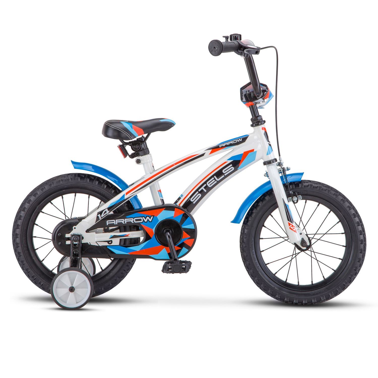 Stels Arrow 14 велосипед для самых маленьких райдеров, которые совершают первые шаги в мире велоспорта. Байк подойдет даже для тех малышей, которые не могут еще держать равновесие на велосипеде. Именно для них предусмотрены съемные боковые маленькие колеса.