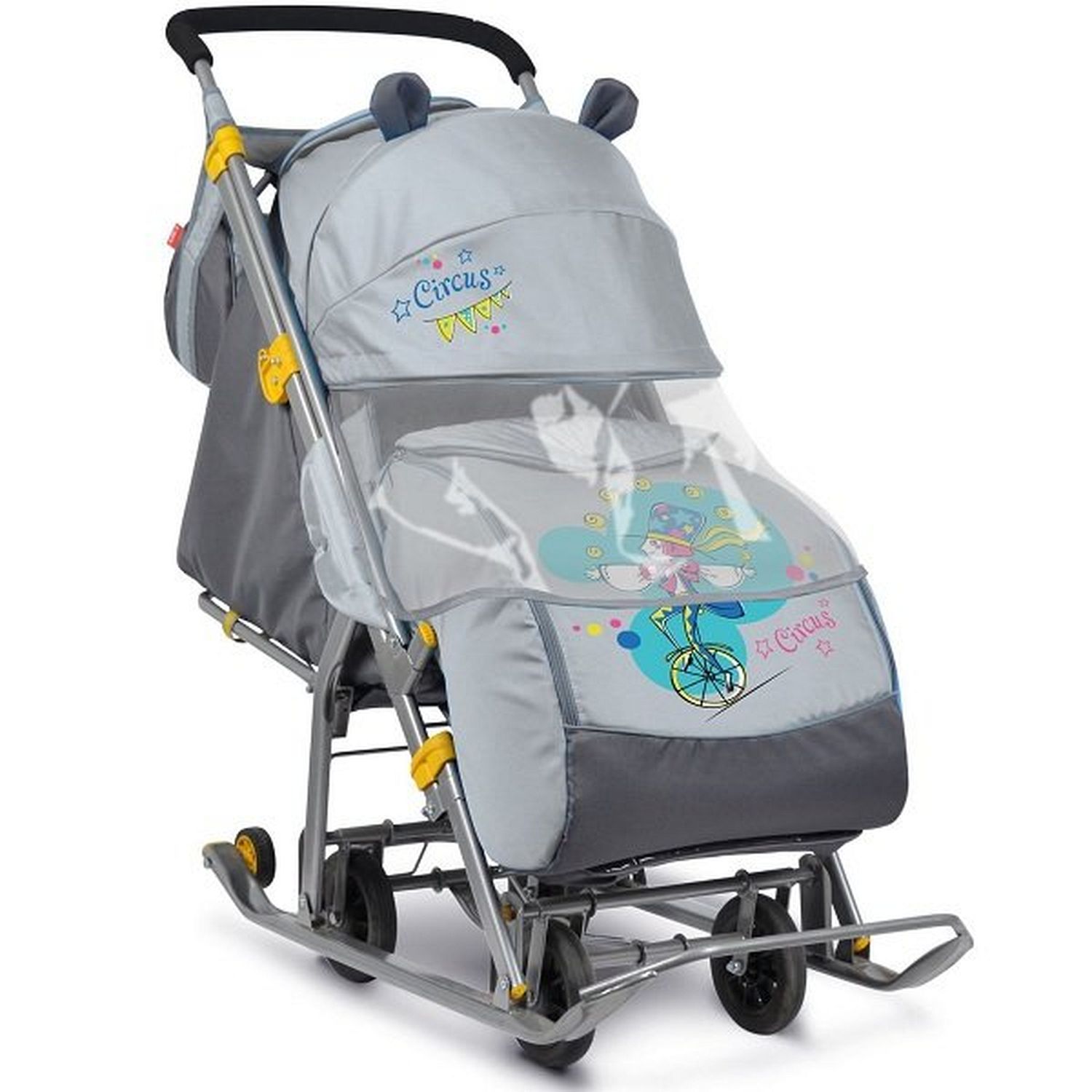 Санки-коляска предназначены для перевозки детей в положении сидя и лежа.Чехол выполнен из влагонепроницаемого износоустойчивого полиэстера.Прочный и легкий металлический каркас, легко складывается. Широкие полозья обеспечивают легкое скольжение по снегу.