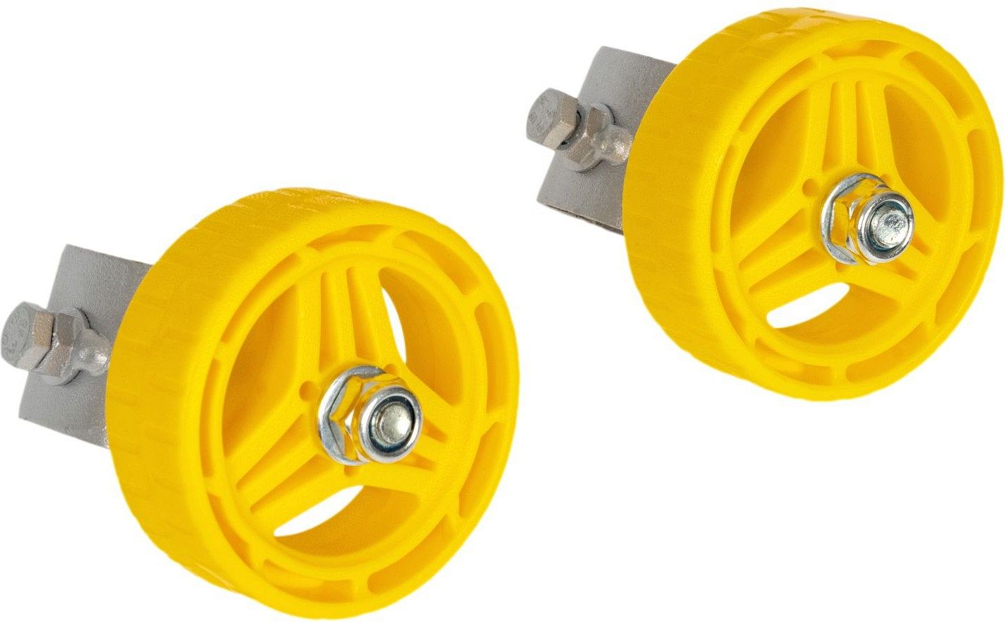 Съемные кронштейны с колесами на детские санки. Предназначены для удобного перемещения санок по твердой поверхности (асфальт, бетон и т. п. ). Подходят для плоских полозьев 40х20 мм. Комплект из 2-х штук.