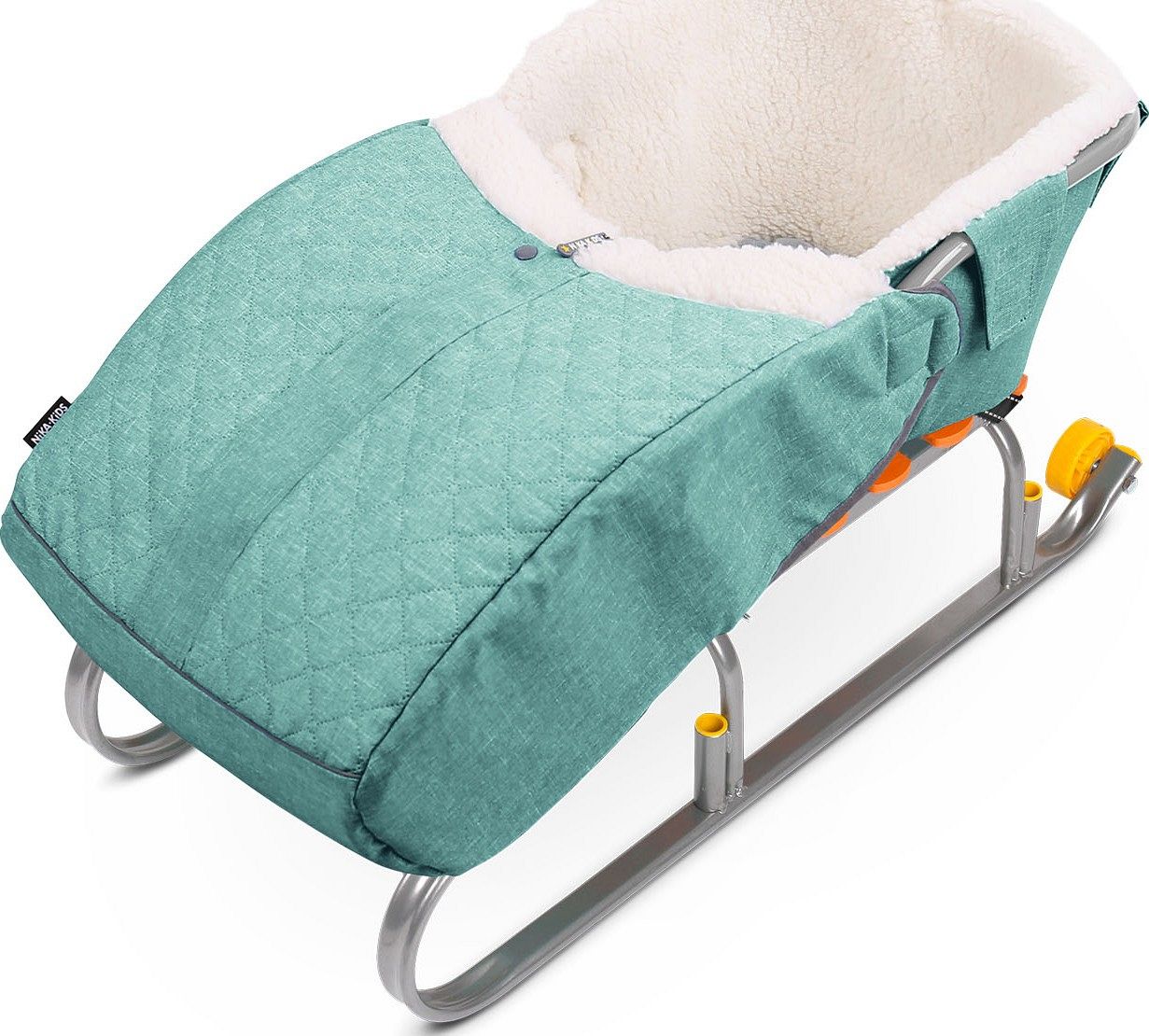 Сиденье-матрац оснащено молнией и светоотражающим кантом, что повышает безопасность и удобство использования. Молния позволяет легко и быстро укутать малыша, а светоотражающий кант делает санки заметными в тёмное время суток, что особенно важно для безопасности на улице.