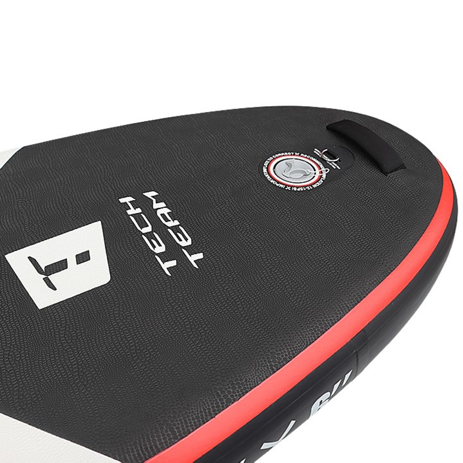 Шеститочечная карго-система (багажник) в носовой части надежно удержит груз на волнах. Дно сапборда и боковые края выполнены в практичном черном цвете. В передней нижней части доски размещено дополнительное D-кольцо, позволяющее швартовать его у берега или выполнять буксировку по воде. Переноску накачанной доски делает удобнее дополнительная ручка на носу. Насос двойного действия позволит быстро и компактно собрать сапборд в рюкзак после отдыха.