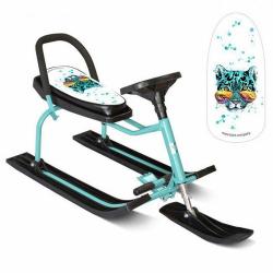 New Look Ричи - это легкий, маневренный снегокат с высокой рамой, отличительной чертой которого является наличие спинки с боковой поддержкой. Конструкция снегоката - разборная, а на сиденье нанесен яркий, оригинальный рисунок. Руль имеет удобную форму, легко поворачивается, также есть ножной тормоз для быстрой остановки. Снегокат выполнен качественно, аккуратно, из безопасных нетоксичных материалов.