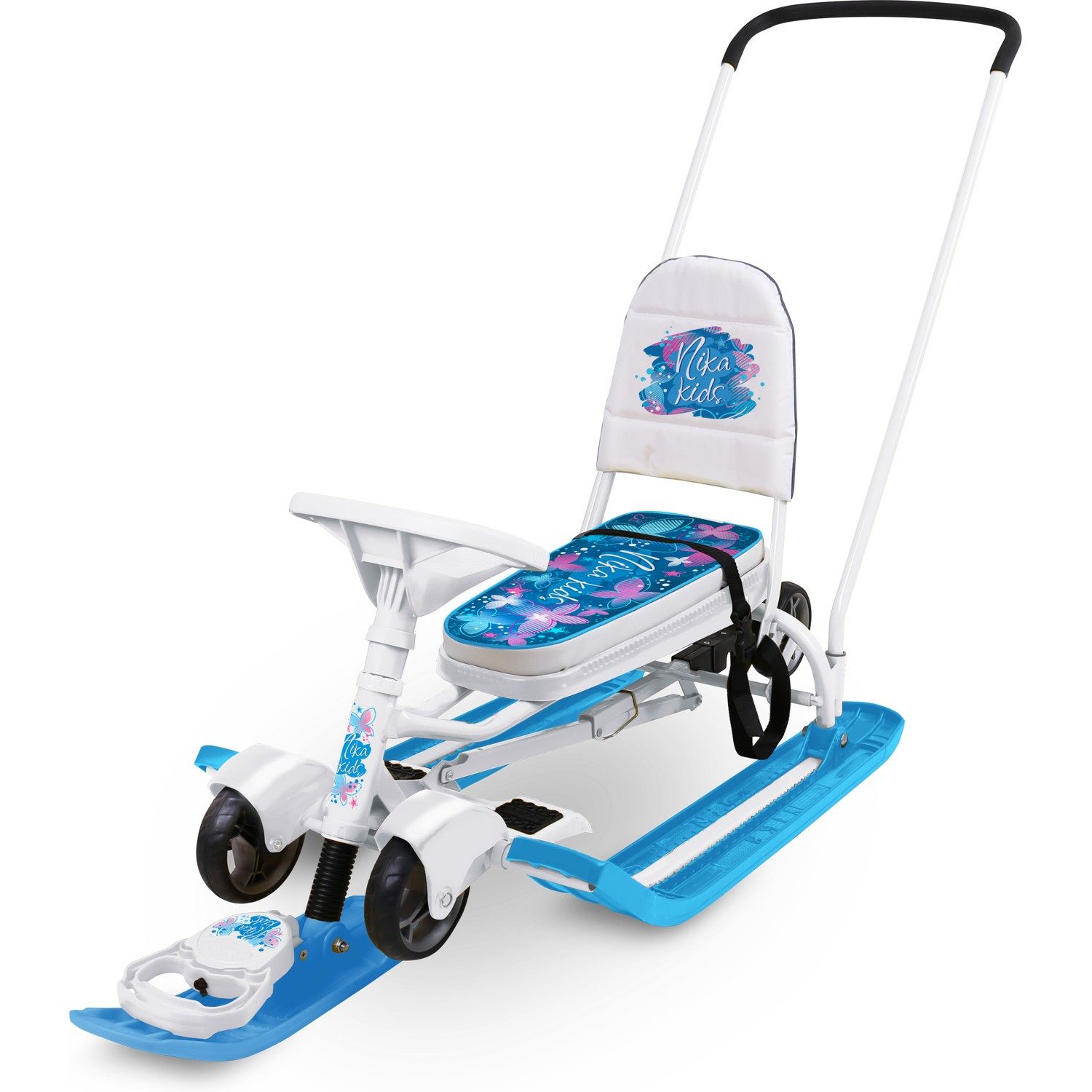Снегокат НИКА Тимка спорт 6, ТС6/БТ – это превосходный выбор для зимних приключений с детьми в возрасте от 4 до 7 лет. Эта модель, украшенная ярким дизайном с бабочками на тёмном фоне, объединяет в себе стиль и практичность, что делает её идеальным спутником для активного отдыха на свежем воздухе. С уникальным механизмом выдвижных шасси и родительской ручкой-толкателем, снегокат легко перемещается как по снежным склонам, так и по другим поверхностям.