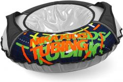 Тюбинг для активного зимнего отдыха с ярким неоновым рисунком для детей от 12 лет.