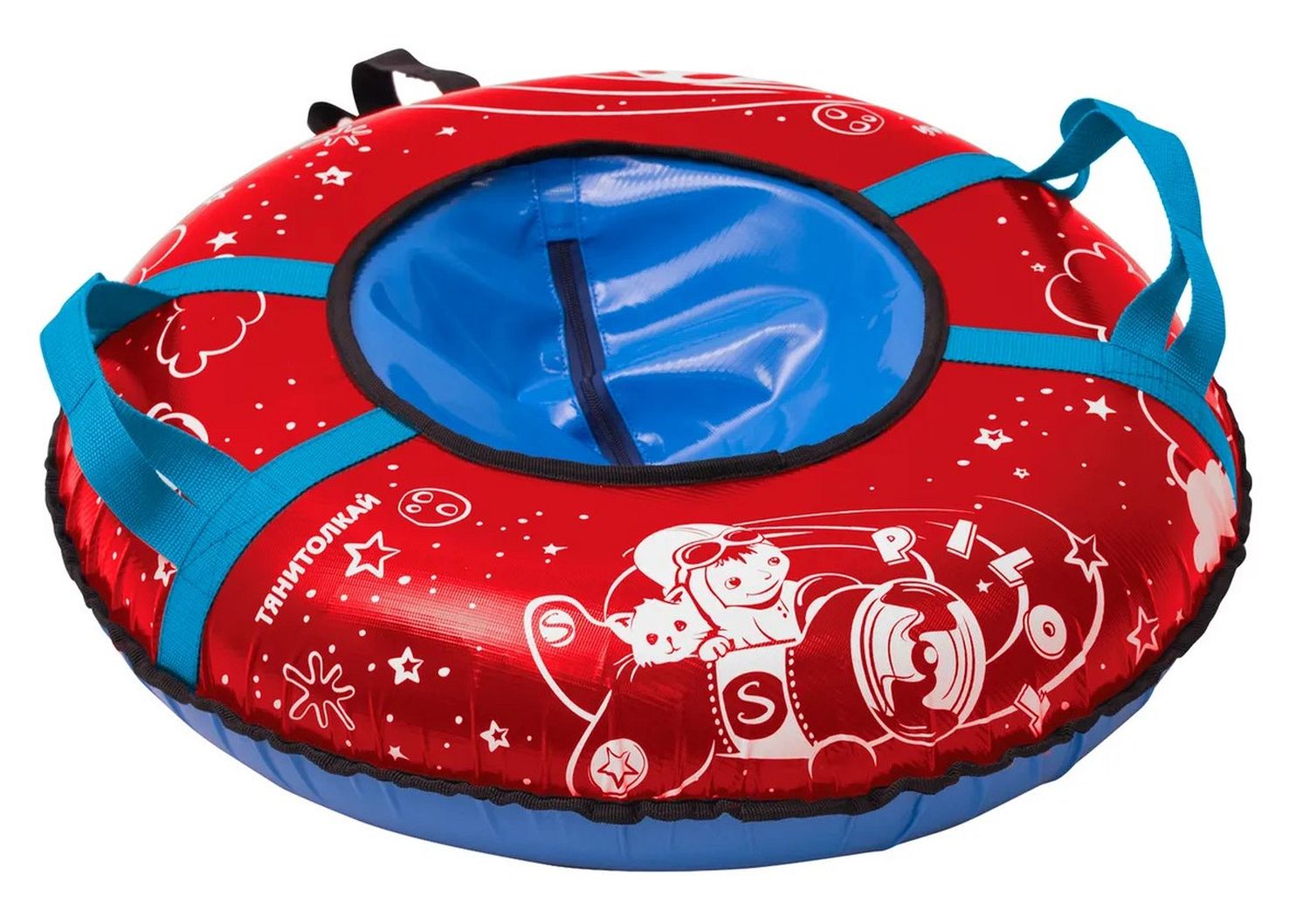 Тюбинг-ватрушка изготовлен из прочного тента, который устойчив к морозам до 25 градусов, глянцевая поверхность материала позволяет тюбингу-ватрушке отлично скользить по снежной поверхности. Для удобного катания предусмотрены ручки-держатели и буксировочный трос из усиленной стропы. Тщательно прошитые плотной лавсановой нитью швы гарантируют долгий срок службы. Прочное травмобезопасное сиденье имеет усиленное дно, а также дополнительно имеет стропу под сидением, которая снижает нагрузку и позволяет пользоваться тюбингом несколько сезонов. Тюбинг укомплектован усиленной автомобильной камерой. Тюбинг-ватрушка является идеальным вариантом для зимних развлечений!