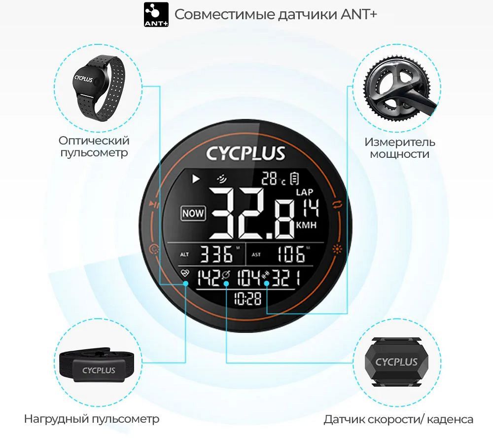 2.5-дюймовый ЖК-экран с подсветкой. Велокомпьютер оснащен литиевой батареей емкостью 1100 мАч, которая может поддерживать 30 часов работы без подзарядки. Водонепроницаемость IPX6 позволяет наслаждаться поездкой даже в дождливую погоду. GPS велокомпьютер имеет до 13 различных данных, отображаемых на 3х страницах (переключаемых), включая одометр, текущую скорость, максимальную скорость, среднюю скорость, частоту вращения педалей, частоту сердечных сокращений, подъем, мощность, высоту, градиент и т. д. Также он совместим со всеми устройствами ANT+. Cycplus M2 поддерживает одновременную запись различных данных и быструю синхронизацию через Bluetooth с телефоном. Учетная запись STRAVA может быть добавлена через официальное приложение XOSS для синхронизации данных на компьютере, что поможет вам отслеживать данные о тренировках и даст вам научный опыт тренировок.