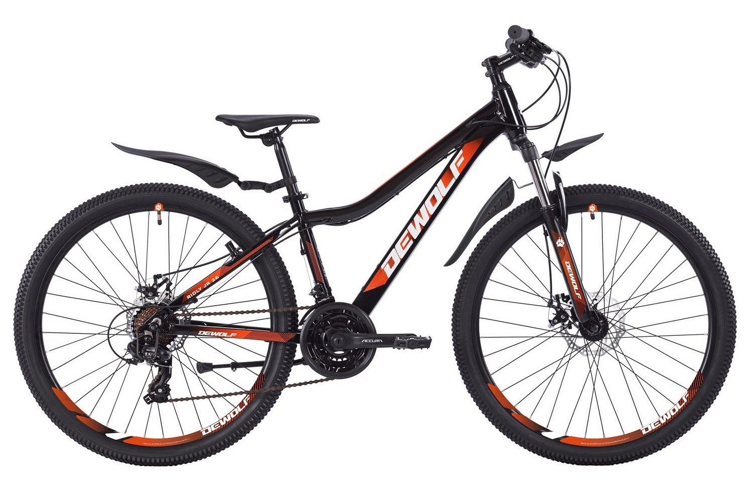 RIDLY JR 26 это отличный стафф для юных райдеров от бренда Dewolf. На модели установлено оборудование среднего класса. Рама из алюминиевого сплава отличается высокой сбалансированностью конструкции. Амортизацию в передней части велосипеда обеспечивает качественная алюминиевая вилка бренда MODE. На велосипеде установлены дисковые механические тормоза, которые дают точный отклик даже в ужасных погодных условиях. Огромным плюсом RIDLY JR 26 являются 26-дюймовые колеса и низкий стендовер рамы. Модель подходит для райдеров ростом от 140 до 165 см, что дает возможность использовать велосипед в течение продолжительного времени.