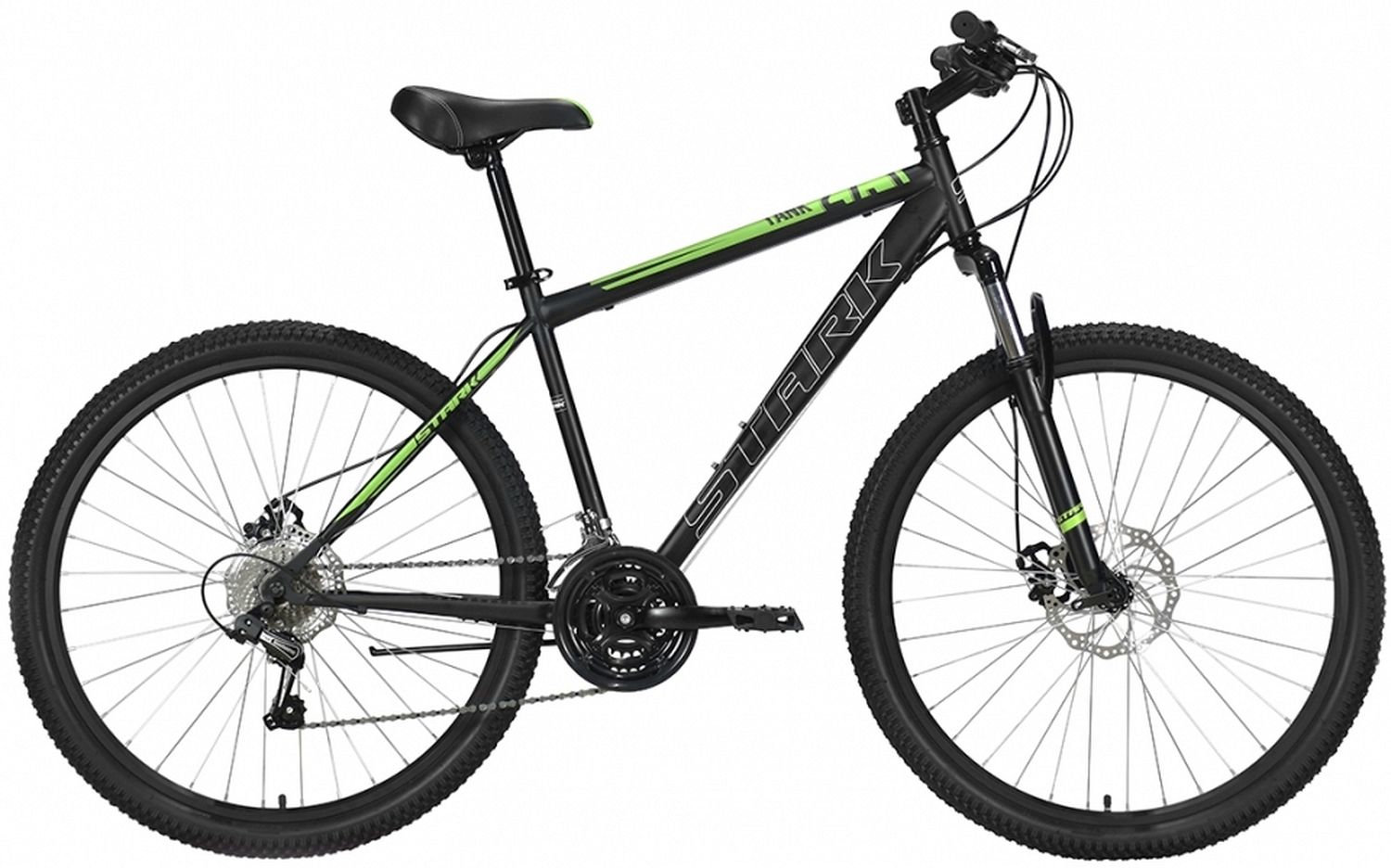 Stark Tank 27.1 D Steel - горный велосипед начального уровня с усиленной рамой и с колесами 27.5 дюймов. Подойдет тем, кто использует велосипед время от времени для недолгих поездок в городе или парке. Рама велосипеда сделана из прочных стальных труб. Доступное по цене навесное оборудование делает этот велосипед хорошим выбором для новичков.