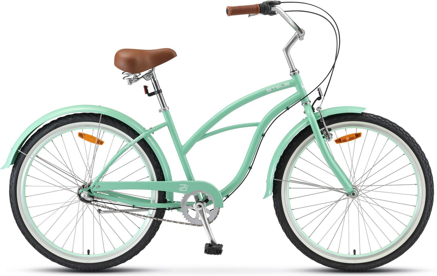 Stels Navigator 130 Lady 26" 3-sp V010 - это комфортный велосипед, специально разработанный для представительниц прекрасного пола. Отличается очень стильным дизайном и оптимальными техническими характеристиками. Три передачи и специально разработанная для подобных моделей велосипедов планетарная втулка для трех скоростей обеспечивают хороший накат и оптимальный набор скорости. Колеса: 26", Рама: Сталь 17", Скоростей: 3, Вилка: Жесткая, сталь, Звёздочка, 18Т, Перек.зад. SHIMANO Nexus 3-sp Inter, Шифтеры: SHIMANO Nexus SL-3S, Тормоза: Передний ободной (V-типа) / Задний ножной, Обод: Алюминий, двойной, Покрышки: 26x2.125.